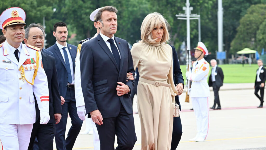 এর আগে, গতকাল সোমবার রাষ্ট্রীয় সফরে ভিয়েতনাম পৌঁছান ফরাসি প্রেসিডেন্ট। এ সময়, উড়োজাহাজের দরজা খোলার সাথে সাথে লাল ড্রেস পরিহিত কেউ ম্যাকরনের গালে চপেটাঘাত করেন। ক্যামেরা দেখে কিছুটা অপ্রস্তুত হয়ে ফের বিমানের ভেতরে ঢুকে যান তিনি। পরে যখন দুজন বেরিয়ে এলেন, তখন বুঝতে বাকি রইলো না লাল ড্রেসওয়ালা আর কেউ নন, প্রেসিডেন্টের স্ত্রী।