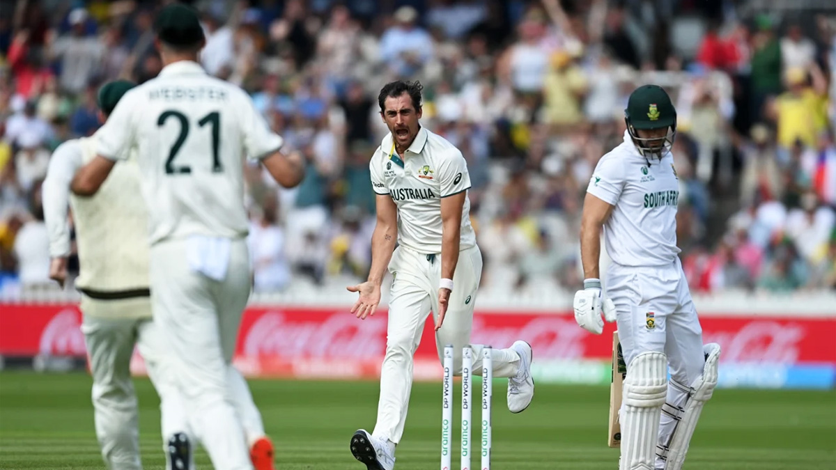 বুধবার (১১ জুন) লর্ডসে টস জিতে ফিল্ডিংয়ের সিদ্ধান্ত নেয় দক্ষিণ আফ্রিকা। নিজেদের প্রথম ইনিংসে ২১২ রানে গুটিয়ে যায় অস্ট্রেলিয়া। দিনের শেষ সেশনে ব্যাটিংয়ে নেমে মাত্র ৪৩ রানে ৪ উইকেট হারায় টেম্বা বাভুমার দল।