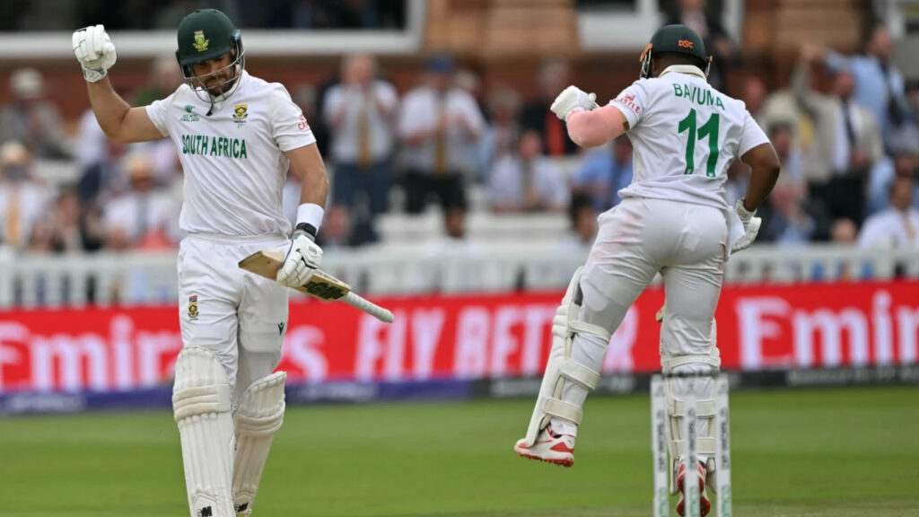 এদিকে ব্যাটিংয়ে নামার আগেই দক্ষিণ আফ্রিকা জেনে গিয়েছিল তাদের লর্ডসে দ্বিতীয় সর্বোচ্চ লক্ষ্য তাড়া করতে হবে। অথচ ওপেনিংয়ে এলেন আগের ইনিংসে ডাক নিয়ে আউট হওয়া মার্করাম। তবে এবার আর তিনি গড়বড় করেননি। রায়ান রিকেলটন দ্রুত ফিরে গেলেও মার্করাম প্রথমে মুল্ডার (৬১ রানের জুটি) ও পরে বাভুমার সঙ্গে দৃঢ় জুটি গড়ে দলকে এগিয়ে নেন।