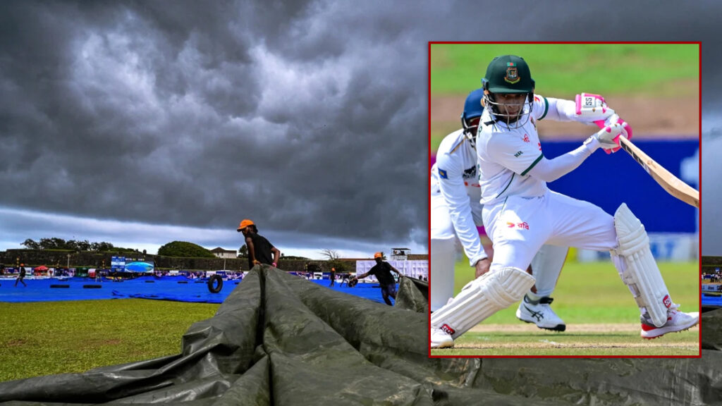 শ্রীলঙ্কার গলের আকাশ ঢেকে গেছে মেঘে। ভর দুপুরে নেমে এসেছে সন্ধ্যার অন্ধকার। এর পরপরই নেমেছে বৃষ্টি। যে কারণে সাময়িকভাবে খেলা বন্ধ করতে বাধ্য হয়েছেন আম্পায়াররা।