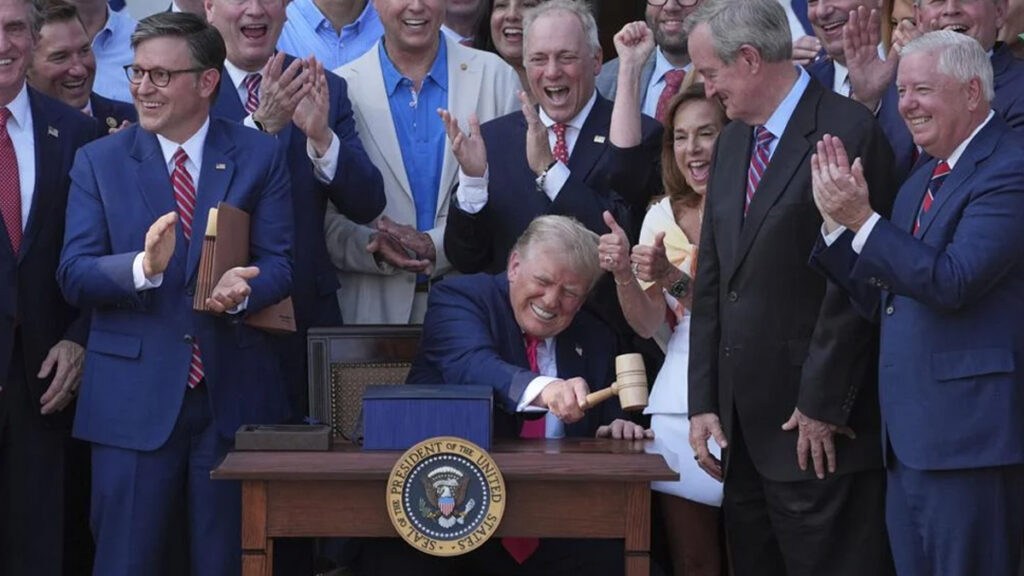 এই বিল স্বাক্ষর তার দ্বিতীয় মেয়াদের সবচেয়ে বড় আইনগত জয়। ট্রাম্প কংগ্রেস সদস্যদের আমন্ত্রণ জানিয়েছিলেন, সঙ্গে ছিলেন সামরিক পরিবারবর্গ—যারা স্বাধীনতা দিবসের নিয়মিত অতিথি। তিনি বিলটিকে ‘ইতিহাসের সবচেয়ে বড় আইন’ বলে ঘোষণা করেন, যদিও কংগ্রেসনাল বাজেট অফিস (সিবিও) বলছে, এটি ফেডারেল ঘাটতি বাড়াবে ৩.৩ ট্রিলিয়ন ডলার। এতে মেডিকেড ও খাদ্য সহায়তায় কাটছাঁট হবে ১ ট্রিলিয়ন ডলার।