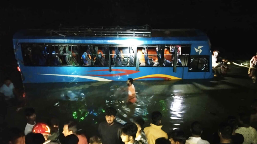 পীরগাছা ফায়ার সার্ভিস এর ইনচার্জ আল আমিন জানান, গাইবান্ধার সুন্দরগঞ্জের বেলকা থেকে বৌভাত খেয়ে রংপুর সদর উপজেলার শ্যামপুর হাটে ফেরার পথে সনাতন ধর্মাবলম্বীদের যাত্রীবাহী একটি বাস গাইবান্ধা সুন্দরগঞ্জ মহাসড়কের বেলতলী এলাকায় নিয়ন্ত্রণ হারায়। এ সময় বাসটি পাশের পুকুরে পড়ে যায়।