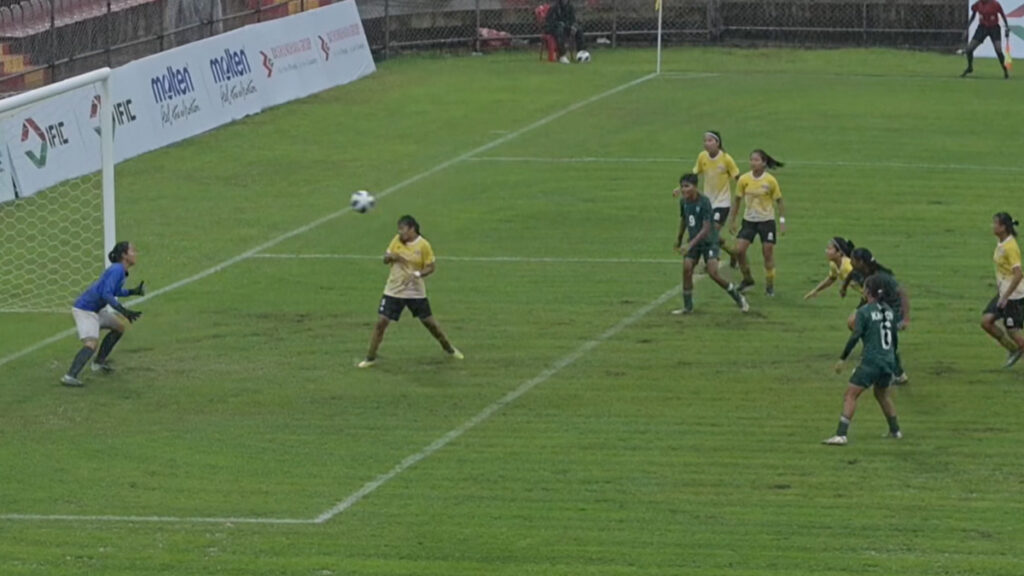 বৃষ্টিকে সঙ্গী করেই কিংস অ্যারেনায় ম্যাচটি শুরু হয়। ম্যাচের ছয় মিনিটে শান্তি মার্ডির গোলে এগিয়ে যায় বাংলাদেশ। তবে ভেজা মাঠে ফুটবল খেলাই কঠিন হয়ে পড়ে। খেলোড়ারা তাদের স্বাভাবিক খেলা খেলতে পারেনি। ভেজা মাঠের কারণে মাটি কামড়ানো শটে বল থেমে যাচ্ছিলো বারবার। এছাড়া, স্বাভাবিক দৌড়াতেও খেলোয়াড়দের বেগ পেতে হচ্ছিলো। এভাবেই শেষ হয় প্রথমার্ধ।