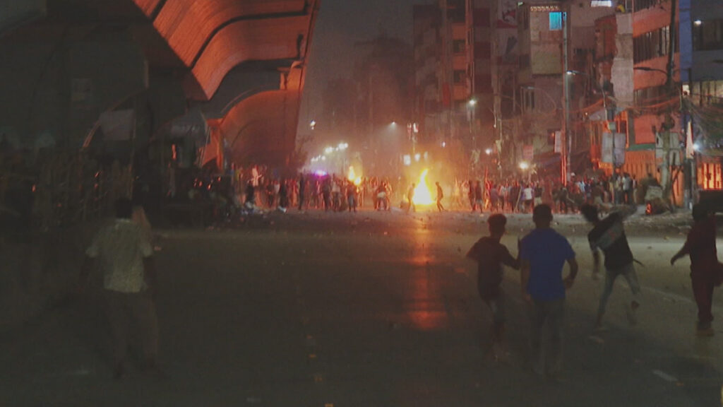রাত ৮টার দিকে যাত্রাবাড়িতে মেয়র হানিফ ফ্লাইওভারের টোলপ্লাজায় আগুন ধরিয়ে দেয় বিক্ষুব্ধ জনতা। ব্যাপক পুলিশ মোতায়েন সত্ত্বেও দমানো যায়নি রাজপথে নেমে আসা সাধারণ মানুষকে।