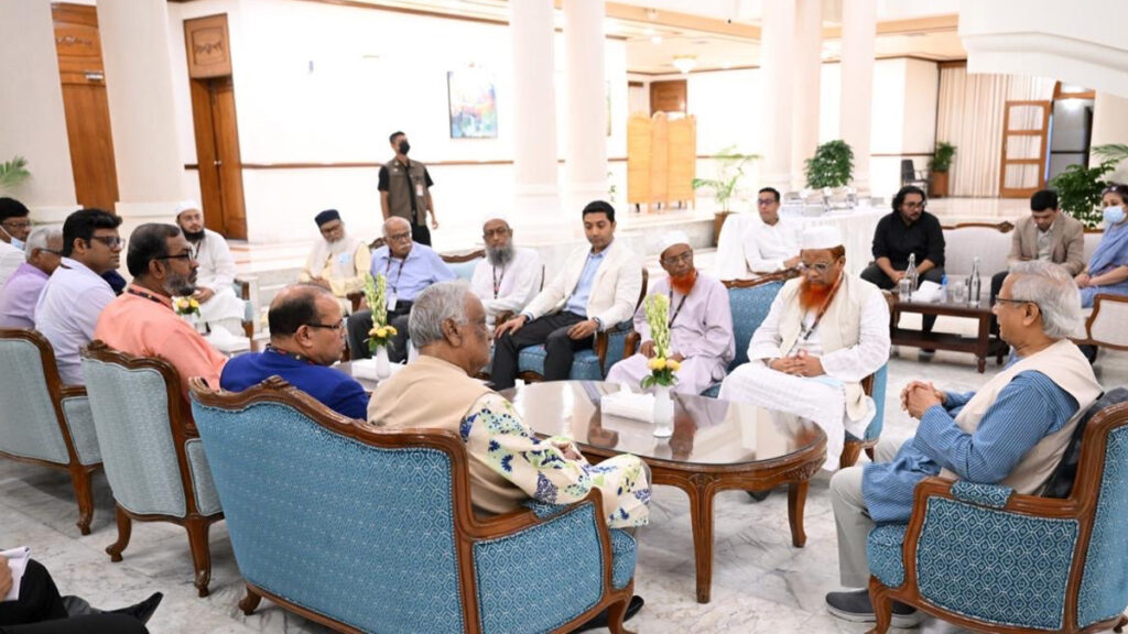 ১৪টি রাজনৈতিক দল ও জোটের সঙ্গে বৈঠকে বসেছেন প্রধান উপদেষ্টা ড. মুহাম্মদ ইউনূস। শনিবার (২৬ জুলাই) বিকেল ৫টায় রাষ্ট্রীয় অতিথি ভবন যমুনায় বৈঠকটি শুরু হয়।