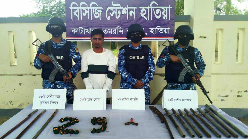 নোয়াখালীর হাতিয়ার চরঈশ্বর ইউনিয়নে অভিযান চালিয়ে আবু বক্কর সিদ্দিক নিজাম নামের এক ব্যক্তিকে আটক করেছে কোস্টগার্ড। এসময় তার কাছ থেকে ৯টি পাইপগান, ৩ রাউন্ড কার্তুজ, ২৯টি হাত বোমা ও ৩টি দেশীয় দা জব্দ করা হয়।