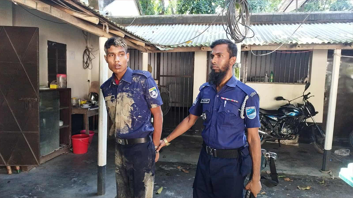 আটক ভুয়া পুলিশ তুষার (বাঁয়ে)