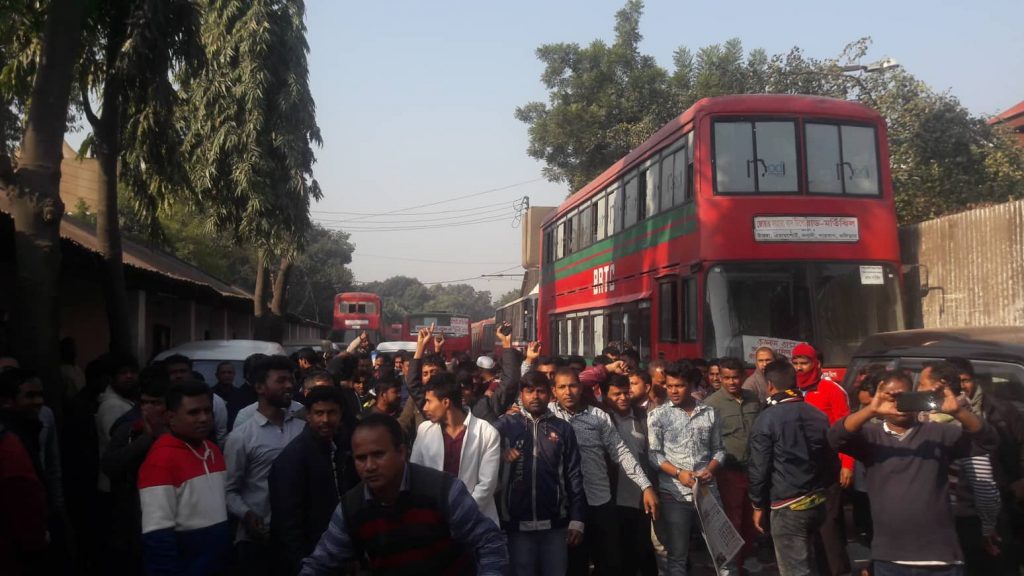 মঙ্গলবার সকাল ৭টা থেকে রাজধানীর বিমানবন্দর সড়কের জোয়ার সাহারা ডিপোতে শ্রমিকরা আন্দোলন শুরু করে।