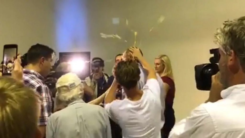 মসজিদে হামলা নিয়ে আপত্তিকর মন্তব্যের প্রতিবাদে এক তরুণ অস্ট্রেলিয়ার ওই সিনেটরের মাথায় ডিম ভাঙেন। পরবর্তীতে মাথায় ডিমের আঘাত আসার পর ওই তরুণকে ঘুষি মারেন সিনেটর ফ্রাজার। পরে নিরাপত্তাবাহিনীর সদস্যরা তাকে থামান এবং তরুণকে আটক করেন।