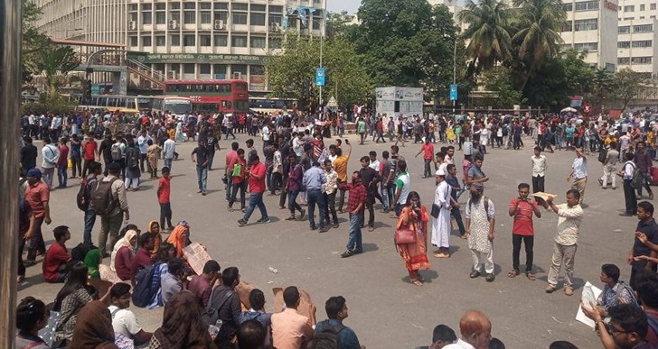 তবে অ্যাম্বুলেন্সসহ সব গুরুত্বপূর্ণ যানবাহনকে চলাচলের জন্য রাস্তা করে দিচ্ছেন শিক্ষার্থীরা।