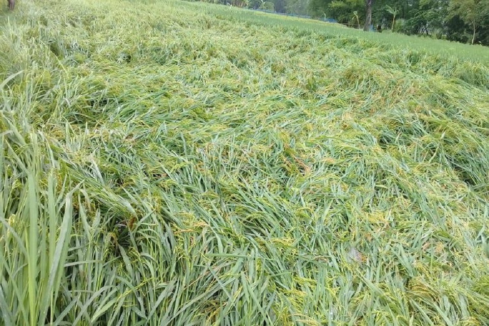 ঝড়ে ক্ষতিগ্রস্থ বোরো ধানের মাঠ