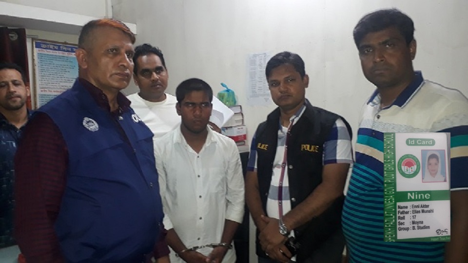 পরে পুলিশের একাধিক টিম কাঠালবাড়ি লঞ্চঘাট এলাকা থেকে লঞ্চ মালিক সমিতির সহায়তায় রুবেলকে আটক করে। রুবেল লঞ্চঘাটে সুপারভাইজার পদে চাকুরী করতো। সে জেলার শিবচর উপজেলার কাঠালবাড়ি ইউনিয়নের বাংলাবাজারের তোতা খানের ছেলে। আর ইন্নি আক্তার শিবচর উপজেলা শেখ ফজিলাতুন্নেছা বালিকা উচ্চ বিদ্যালয়ের ৯ম শ্রেণীর ছাত্রী। সে শরীয়তপুর জেলার জাজিরা উপজেলার পশ্চিম নাওডোবা মুন্সীকান্দি গ্রামের মৃত ইলিয়াস মুন্সীর মেয়ে। তার মা শিবচর উপজেলা প্রকৌশলী কার্যালয়ের কর্মচারী। তারা শিবচর পৌরসভার স্বাস্থ্য কলোনিতে ভাড়া বাসায় বসবাস করে।