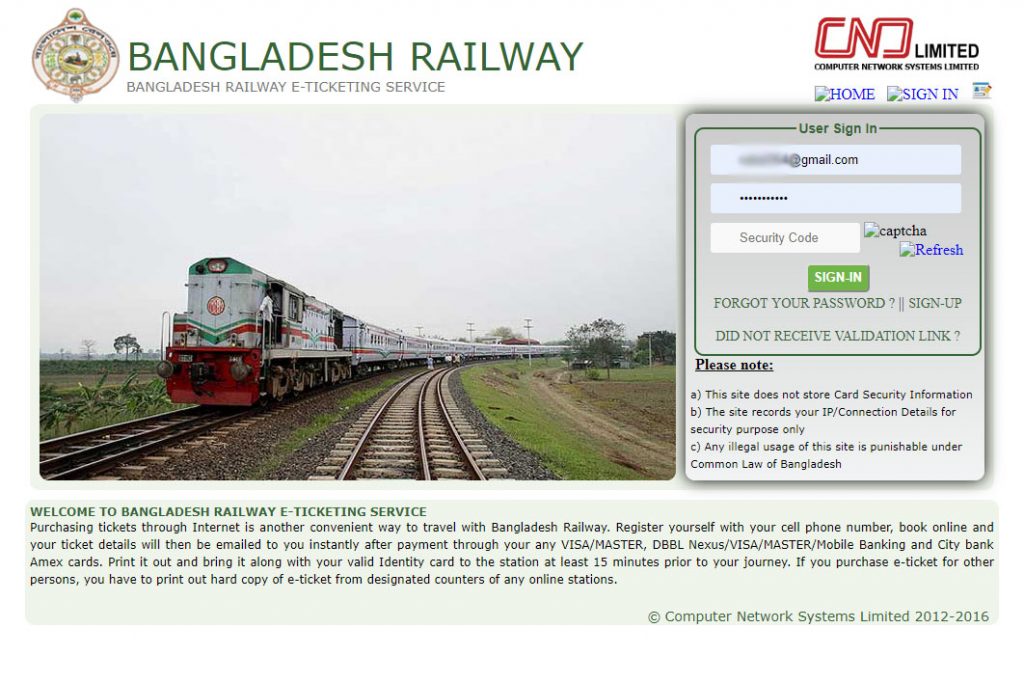 ২০০৭ সাল থেকে বাংলাদেশ রেলওয়ের সঙ্গে কাজ করছে কম্পিউটার নেটওয়ার্ক সিস্টেম (সিএনএস) লিমিটেড বাংলাদেশ। কাউন্টারে রেলওয়ের টিকিট বিক্রির সফটওয়্যার ব্যবস্থাপনা ও অনলাইনে টিকিট বিক্রির ব্যবস্থাপনার দায়িত্বে থাকা প্রতিষ্ঠানটি ‘রেলসেবা’ নামে টিকিট বিক্রির অ্যাপের ব্যবস্থাপনার দায়িত্বেও রয়েছে।
