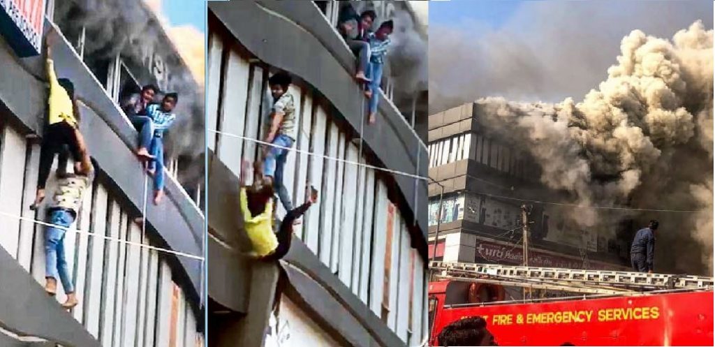 ভারতের একটি বাণিজ্যিক কমপ্লেক্সের চতুর্থ এবং পঞ্চম তলার জানালা জুড়ে আগুনের লেলিহান শিখা। কুণ্ডলী পাকিয়ে উঠছে কালো ধোঁয়া। প্রাণ বাঁচাতে সবচেয়ে উপরের তলা থেকে একের পর এক কিশোর ঝাঁপিয়ে পড়ছে নীচে। কেউ কেউ আবার কার্নিশে কোনও ক্রমে দাঁড়িয়ে বাঁচার চেষ্টা করেছে। গতকাল বিকেলে গুজরাটের সুরাতে এমনই এক ভয়াবহ অগ্নিকাণ্ডের সাক্ষী রইল। ওই অগ্নিকাণ্ডে মৃত্যু হয়েছে ২০ জন পড়ুয়ার। যাদের বয়স ১৪ থেকে ১৭ বছরের মধ্যে। আহত অনেকে।