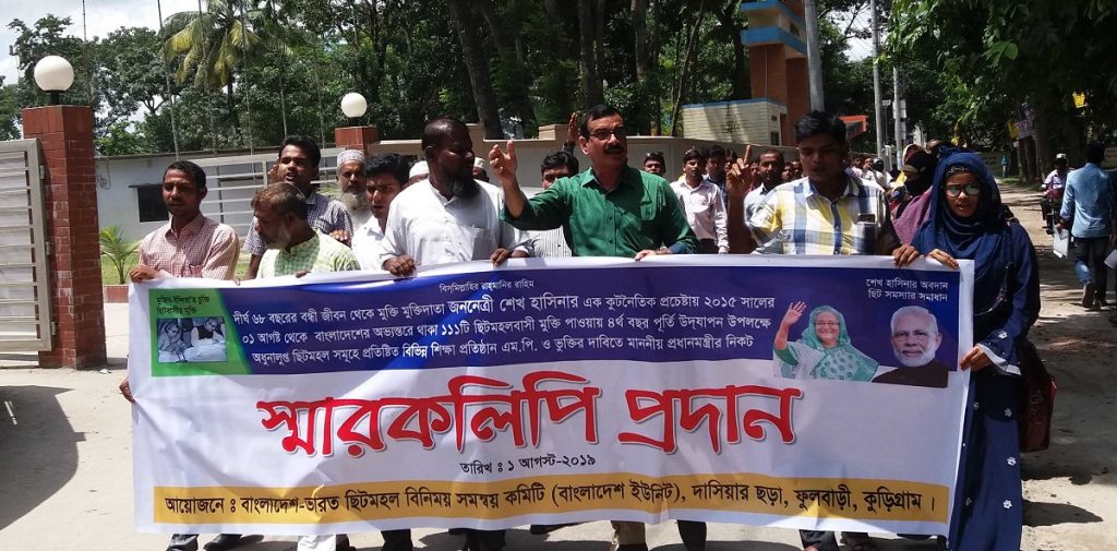 বৃহস্পতিবার দুপুরে বিলুপ্ত ছিটমহল দাসিয়ারছড়া থেকে কয়েকশ শিক্ষক-কর্মচারী মিছিল নিয়ে কুড়িগ্রাম শহর প্রদক্ষিণ করে।