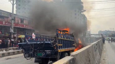 ঢাকা-টাঙ্গাইল মহাসড়কে চলন্ত ট্রাকে আগুন, দীর্ঘ যানজট