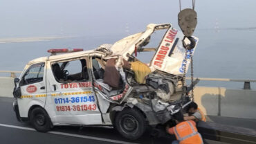 পদ্মা সেতুতে বাসের ধাক্কায় দুমড়েমুচড়ে গেল অ্যাম্বুলেন্স, আহত ৫