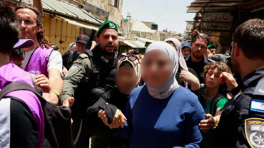 ‘জেরুজালেম দিবসে’ র্যালিতে হিজাব পরিহিত নারীর গায়ে ইসরায়েলির থুতু