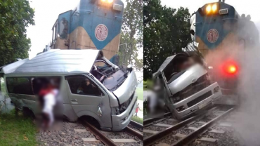 ট্রেনের ধাক্কায় চুর্ণ মাইক্রোবাস, বর-কনে সহ নিহত ১০