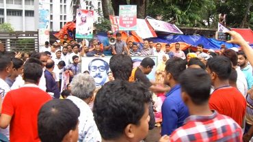 বেতন ও পেনশনের দাবিতে পৌরসভা কর্মচারীদের অবস্থান ধর্মঘট