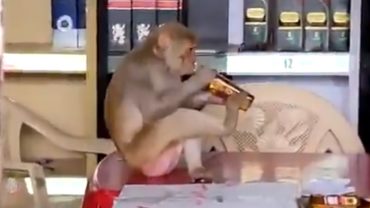 বারে ঢুকে বোতল খুলে মদ খাওয়া শুরু করলো বানর (ভিডিও)
