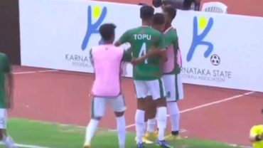 বাঁচা মরার ম্যাচে রাকিবের গোলে সমতায় ফিরে প্রথমার্ধ শেষ করলো বাংলাদেশ