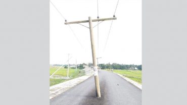 সড়কের মাঝে বিদ্যুতের ঝুঁকিপূর্ণ খুঁটি!