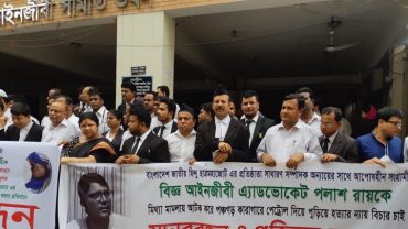 কারাগারে আগুনে পুড়ে আইনজীবীর মৃত্যুর প্রতিবাদে মানববন্ধন