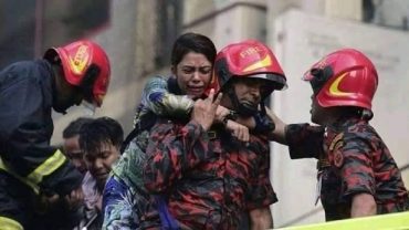 ফায়ার সার্ভিস কর্মীর কাঁধে উদ্ধার পাওয়া তরুণীর ছবি ভাইরাল