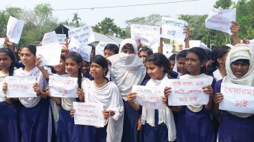 খেলার মাঠের দাবিতে নড়াইলে শিক্ষার্থীদের মানববন্ধন