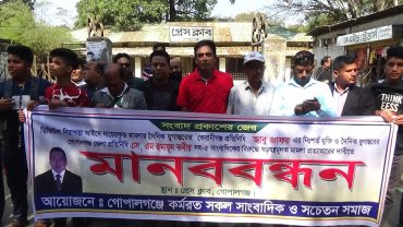 ‘যুগান্তর’ সাংবাদিকদের নামে মিথ্যা মামলা প্রত্যাহারের দাবিতে মানববন্ধন