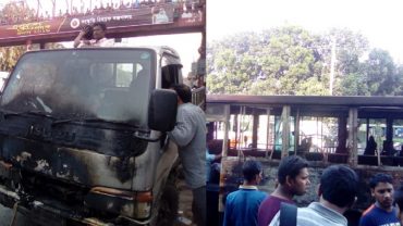 রাস্তায় গ্যাসলাইন লিকেজ, হঠাৎ আগুনে পুড়লো বাস-পিকাপ