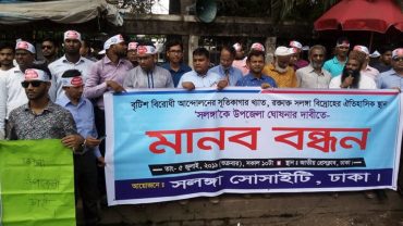 সলঙ্গাকে উপজেলা করার দাবিতে মানববন্ধন