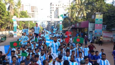 আর্জেন্টিনার ২০২২ ফুট পতাকা নিয়ে ফেনীতে বর্ণাঢ্য র্যালি