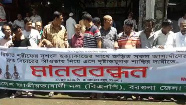 রিফাত হত্যার বিচার দাবিতে বরগুনায় বিএনপির মানববন্ধন