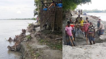 বাঁধ কেটে জিও ব্যাগ ভরাচ্ছে পাউবো, অর্ধ-শতাধিক বাড়ী নদীগর্ভে