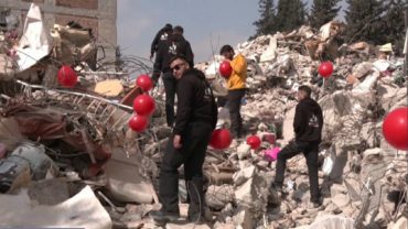 শিশুদের স্মরণে তুরস্কের ধ্বংসস্তূপে বাঁধা হলো দেড় হাজার লাল বেলুন