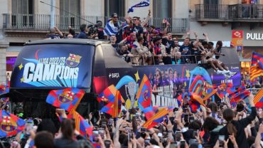 খোলা বাসে শিরোপা জয় উদযাপন বার্সার; মেসি স্লোগানে মুখরিত ভক্তরা
