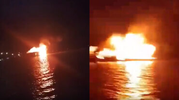 হাওরে আগুনে পুড়লো পর্যটকবাহী নৌকা