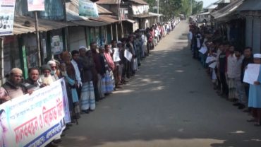 নেত্রকোণার কলমাকান্দায় শিশু হত্যার প্রতিবাদে মানববন্ধন
