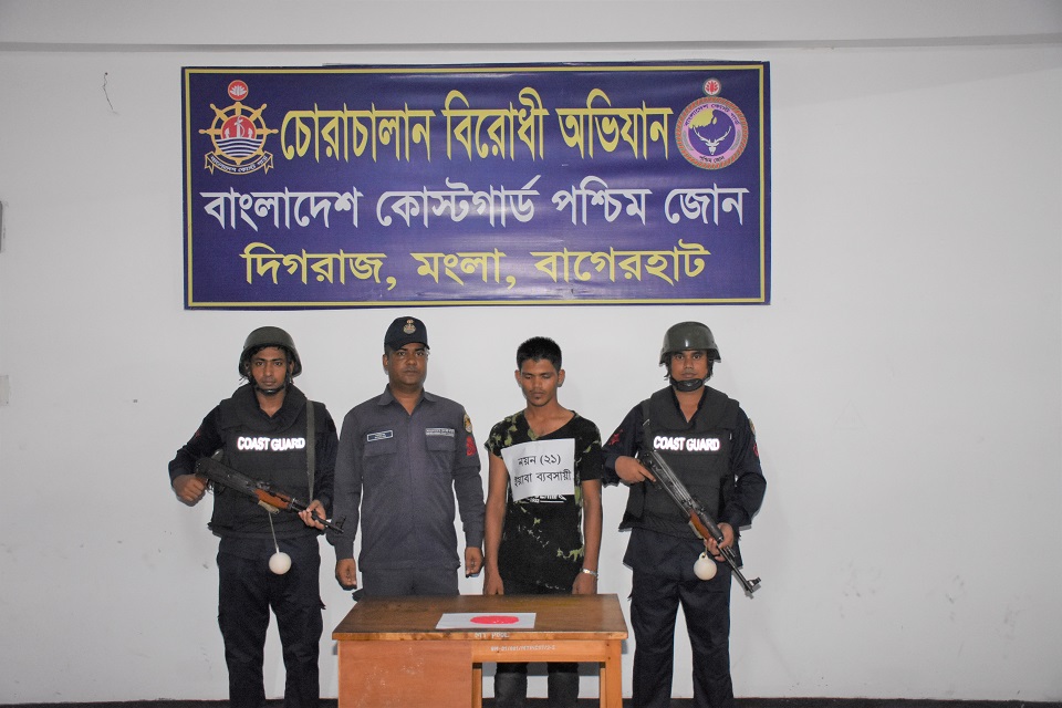 গোপন সংবাদের ভিত্তিতে শনিবার ২৪ আগস্ট সন্ধ্যা সাড়ে ৬টার সময় কোস্ট গার্ড বাহিনী পশ্চিম জোন বাগেরহাট জেলার মংলা থানার অন্তর্গত দিগরাজ কলেজ রোড সংলগ্ন এলাকায় অভিযান পরিচালনা করে ৩০৪ পিস ইয়াবাসহ তাকে আটক করা হয় বলে জানায় কোস্ট গার্ডের কর্মকর্তারা।