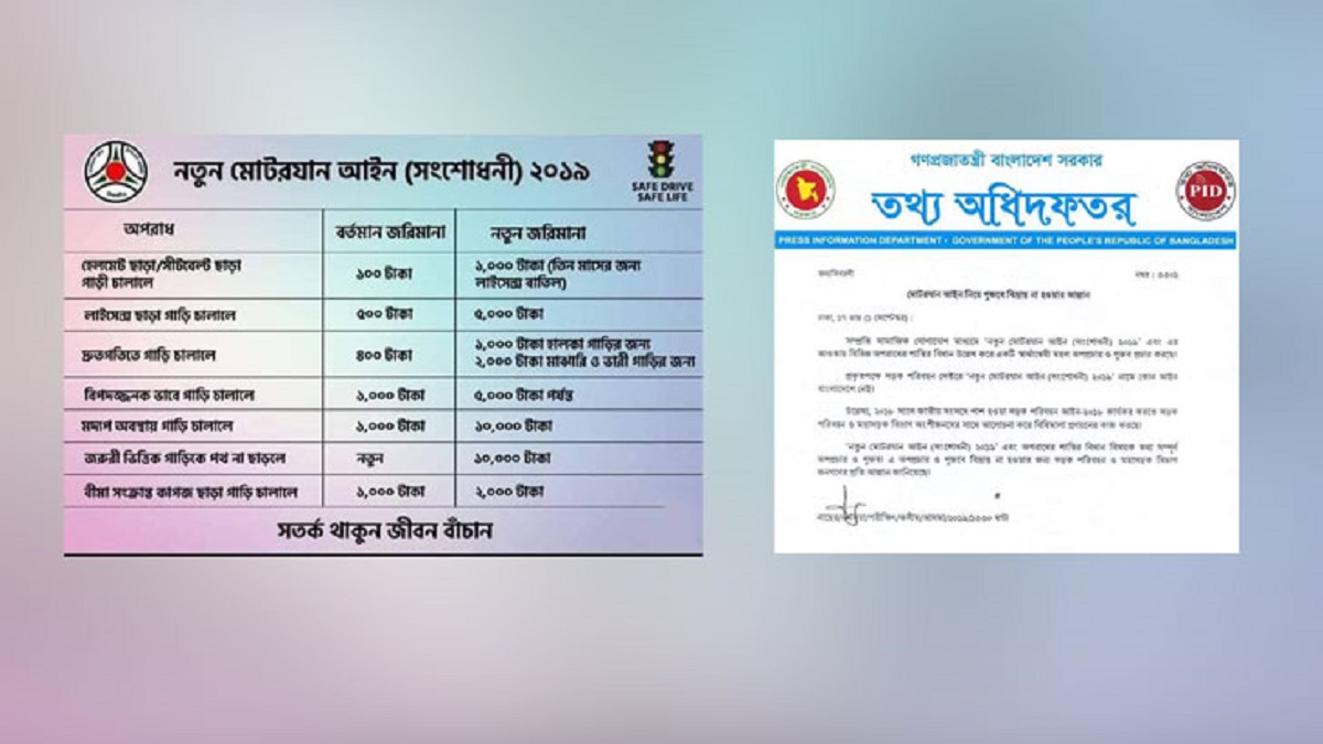 রোববার সেতু মন্ত্রণালয়ের উপতথ্য প্রধান আবু নাসের টিপু স্বাক্ষরিত প্রেস বিজ্ঞপ্তিতে এ তথ্য জানানো হয়। তথ্য মন্ত্রণালয়ের ওয়েবসাইটে প্রকাশিত হওয়া ওই বিজ্ঞপ্তিতে মোটরযান আইন নিয়ে গুজবে বিভ্রান্ত না হওয়ার আহ্বান জানানো হয়।