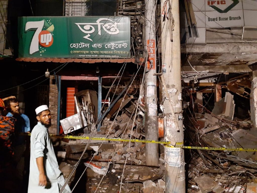 গাজীপুর বোর্ডবাজার এলাকায় রেস্টুরেন্টে বিস্ফোরণের ঘটনা ঘটেছে। এতে দেয়াল ধসে পথচারিসহ ১৭ জন আহত হয়েছেন। দগ্ধ ৬ জনকে ঢাকা মেডিকেল হাসপাতালের বার্ন ইউনিটে, ১১ জনকে অন্য হাসপাতালে ভর্তি করা হয়েছে। শনিবার রাত দুইটার দিকে এই বিস্ফোরণের ঘটনা ঘটে।