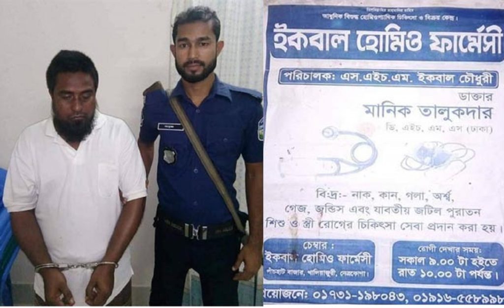 খালিয়াজুরী থানার অফিসার ইনচার্জ এটিএম মাহমুদুল হক বলেন, মূলত তিনি একজন ভুয়া চিকিৎসক। গ্রেফতারের পর মানিক তালুকদার নিজেকে হোমিও ডাক্তার হিসাবে পরিচয় দেন। তার কাছে শিক্ষাগত যোগ্যতার সনদপত্র দেখতে চাইলে তিনি তা দেখাতে পারেনি। সে মা ও শিশু, চর্ম ও যৌন সার্জারিতে বিশেষ অভিজ্ঞ এমন পরিচয় দিয়ে সাধারণ মানুষের সাথে প্রতারণা করে আসছে। এ ঘটনায় মামলা দায়ের হয়েছে।