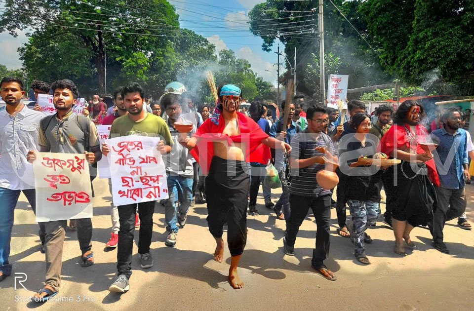 ঢাকা বিশ্ববিদ্যালয়ের কেন্দ্রীয় ছাত্র সংসদ (ডাকসু), ব্যবসায় শিক্ষা অনুষদের ডিন এবং ঢাবির ভিসি ও ঢাবি থেকে দূর্নীতির ভুত তাড়াতে ক্যাম্পাসে ভুত তাড়ানো মিছিল করেছে ঢাকা বিশ্ববিদ্যালয়ের শিক্ষার্থীরা।
