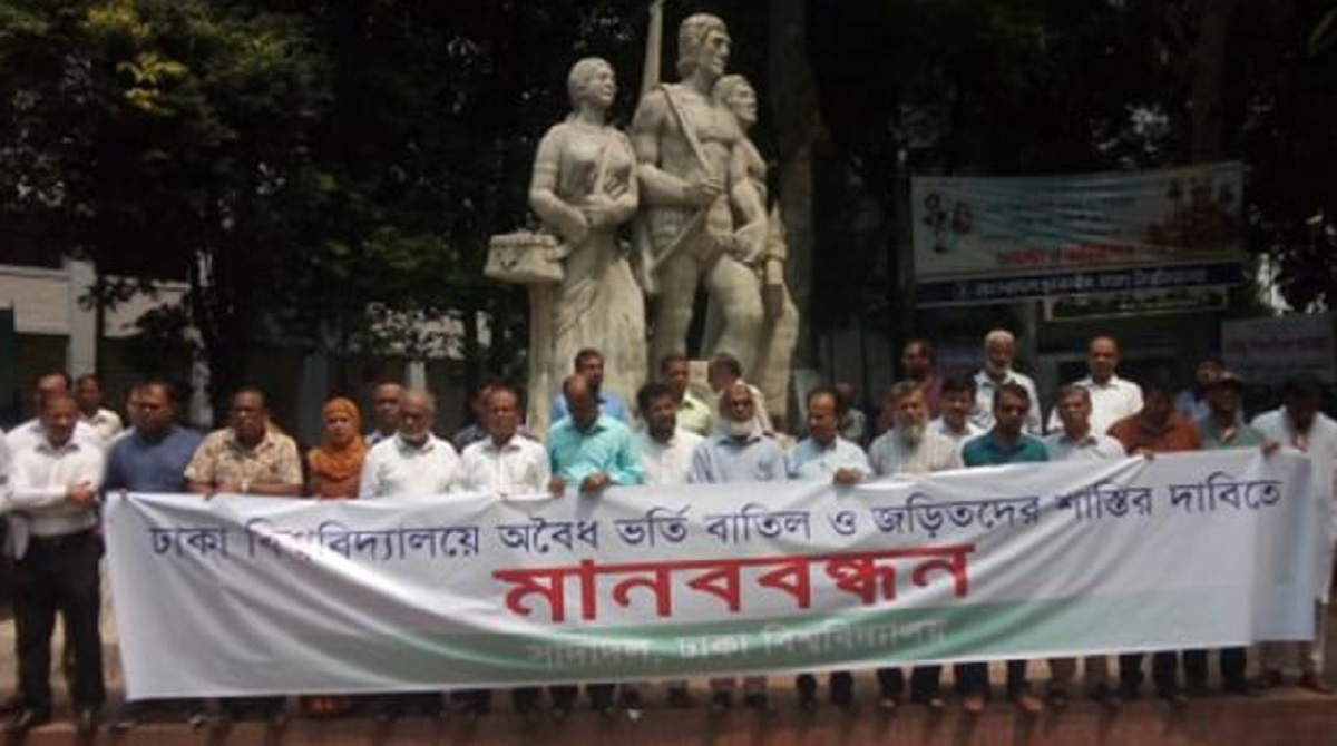 আজ বৃহস্পতিবার দুপুরে বিশ্ববিদ্যালয়ের অপরাজেয় বাংলায় মানববন্ধন থেকে একথা জানান শিক্ষকরা।
