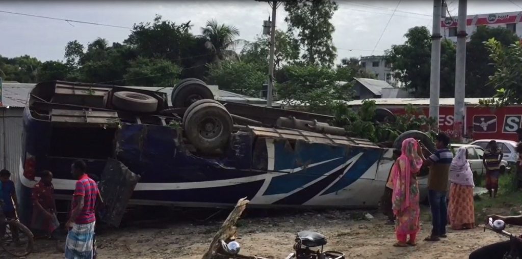 উল্টে গেলো বাস, পথচারীর মৃত্যু