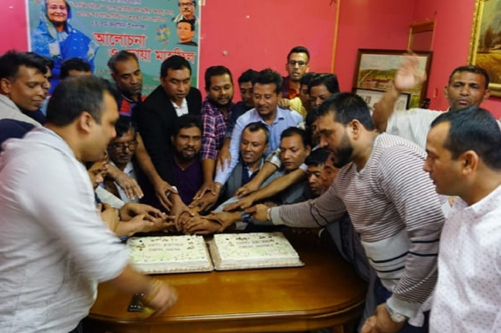 অনুষ্ঠানের শেষ পর্যায়ে জন্মদিনের কেক কাটেন নেতাকর্মীরা।
