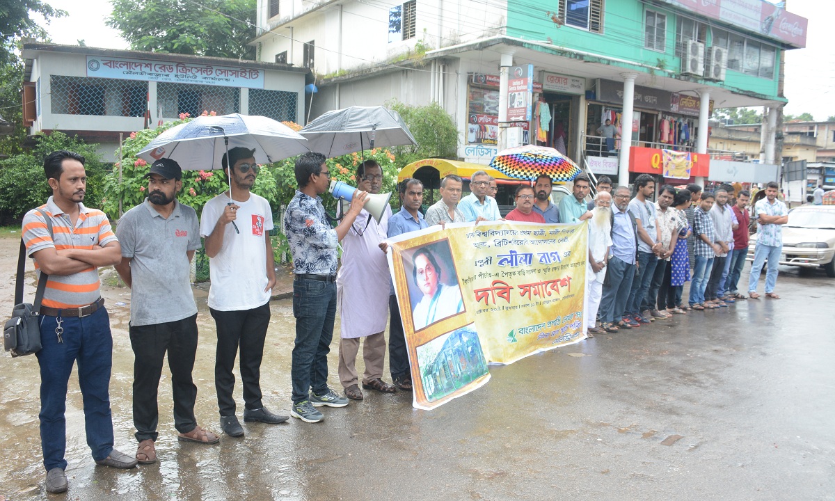 বুধবার দুপুরে মৌলভীবাজার প্রেসক্লাব প্রাঙ্গনে অনুষ্ঠিত দাবি সমাবেশে বিভিন্ন সামাজিক ও সাংস্কৃতিক সংগঠনের প্রতিনিধিরা অংশ গ্রহণ করেন। লীলা নাগ স্মৃতি পরিষদের সভাপতি কবি ইন্দ্রজিৎ দেবের সভাপতিত্বে এবং বাংলাদেশ প্রগতি লেখক সংঘ মৌলভীবাজার জেলা কমিটির সাধারণ সম্পাদক আহমদ আফরোজের সঞ্চালনায় বক্তব্য দেন সংস্কৃতজন ডা. এম এ আহাদ, সিপিবির সম্পাদক মন্ডলীর সদস্য জহর লাল দত্ত, বাংলাদেশ পরিবেশ আন্দোলন বাপার সমন্বয়ক আ.স.ম সালেহ সোহেল, বাংলাদেশ ছাত্র ইউনিয়ন মৌলভীবাজার জেলা সংসদের সভাপতি শুবিনয় শুভ, সমাজতান্ত্রিক ছাত্র ফ্রন্টের মৌলভীবাজার জেলা কমিটির সভাপতি রেহনুমা রুবাইয়াত।