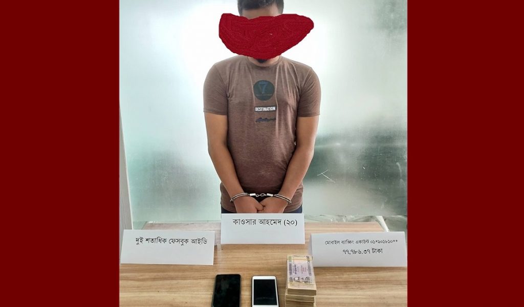 বুধবার রাতে কুমিল্লার কোটবাড়ী এলাকা থেকে এই প্রতারককে আটক করে ঢাকা মেট্রোপলিটন পুলিশের সাইবার সিকিউরিটি এন্ড ক্রাইম বিভাগ। তার কাছ থেকে ২টি মোবাইল ফোন, নগদ ৫ লক্ষ টাকা জব্দ করা হয়। তার মোবাইল ব্যাঙ্কিং অ্যাকাউন্টেও ৭৭ হাজার টাকার তথ্য পাওয়া গেছে।